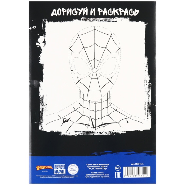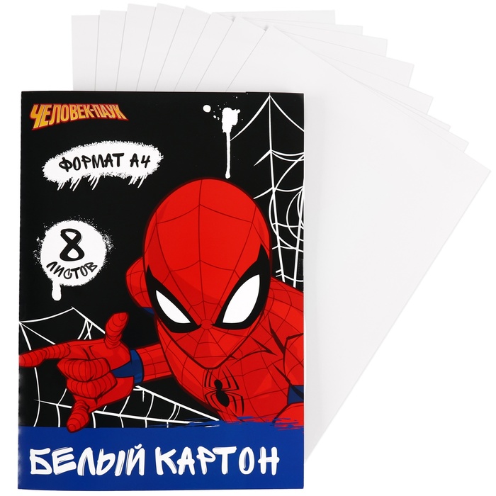 Картон белый, А4, 8 листов, мелованный, односторонний, 200 г/м², «Человек-Паук» — Характеристики