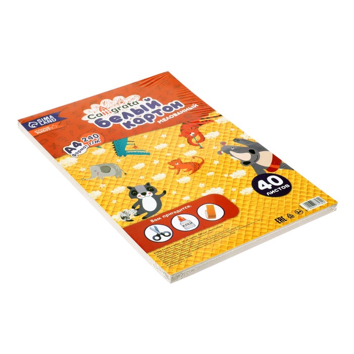 Картон белый А4 Calligrata, 40 листов, 240 г/м2, мелованный, односторонний, в т/у пленке — Характеристики
