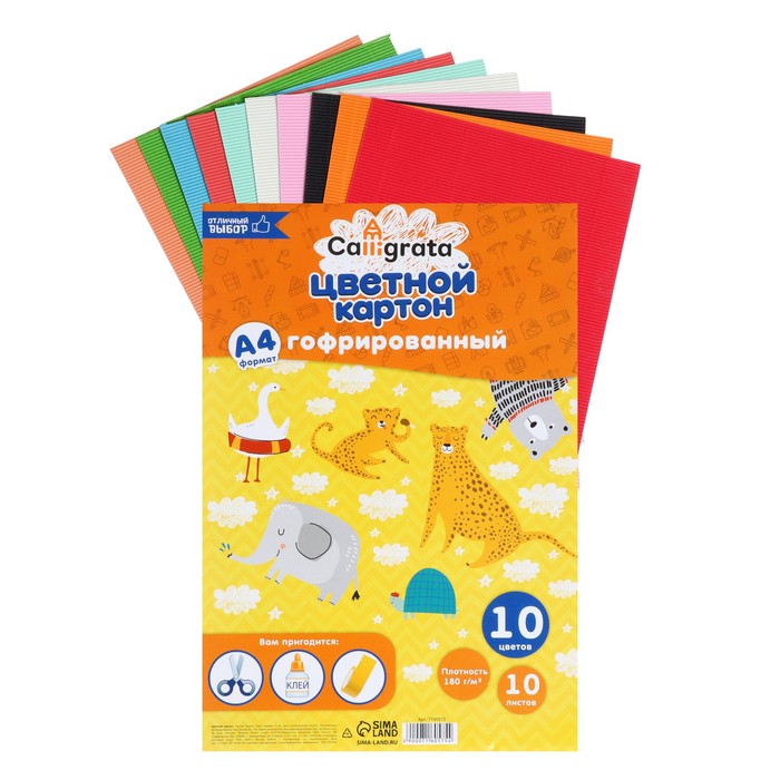 Картон гофрированный А4, 10 листов, 10 цветов, 180 г/м2 — Характеристики