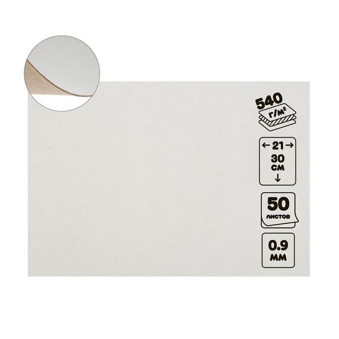 Картон переплётный 0.9 мм, 21 х 30, 50 листов, 540 г/м², белый — Характеристики