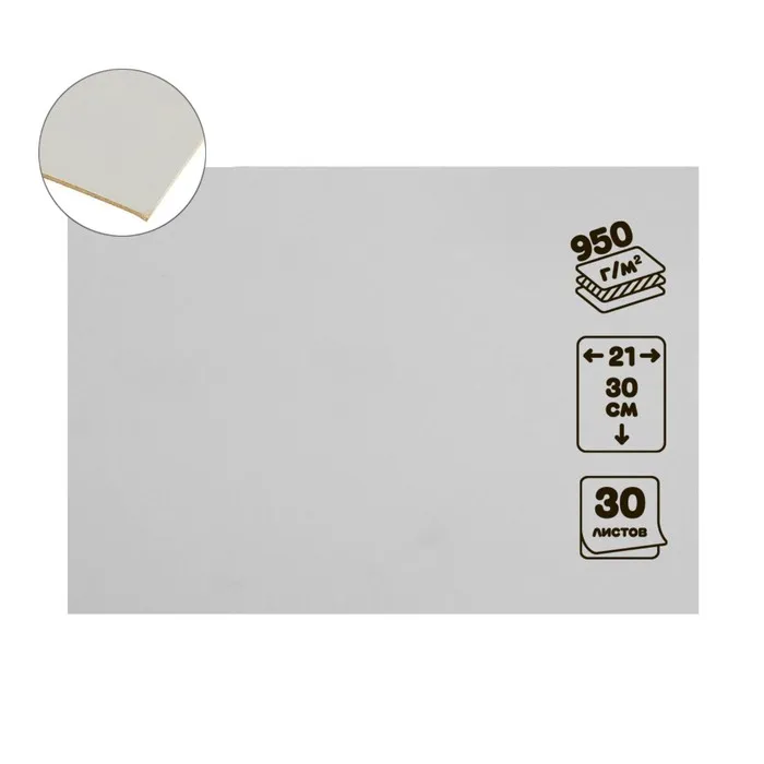 Картон переплётный 1.5 мм, 21 х 30 см, 30 листов, 950 г/м", белый — Характеристики