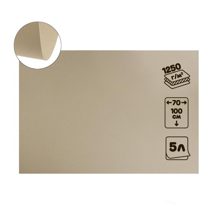 Картон переплётный 2.0 мм, 70 х 100 см, 5 листов, 1250 г/м", серый — Характеристики