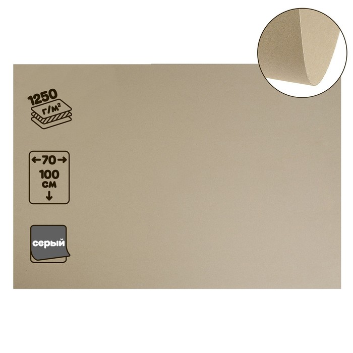 Картон переплётный (обложечный) 2.0 мм, 70×100 см, 1250 г/м², серый