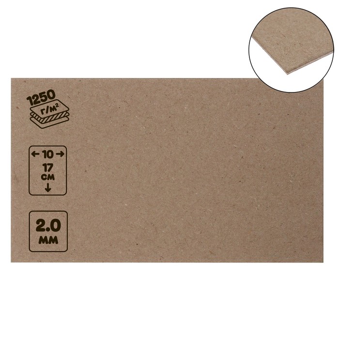 Картон переплётный (обложечный) 2.0 мм, 10×15 см, 1250 г/м², белый