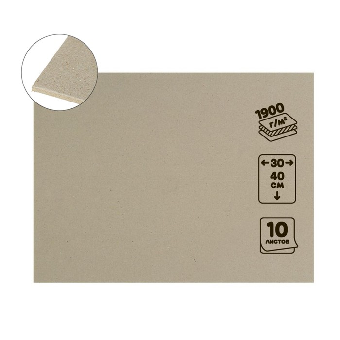 Картон переплётный 3.0 мм, 30 х 40 см, 10 листов, 1900 г/м², серый — Характеристики