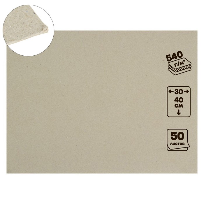 Картон переплётный А3 (297 х 420 мм), набор 5 листов, 2.0 мм, 1250 г/м2, серый, в пакете, Calligrata — Характеристики