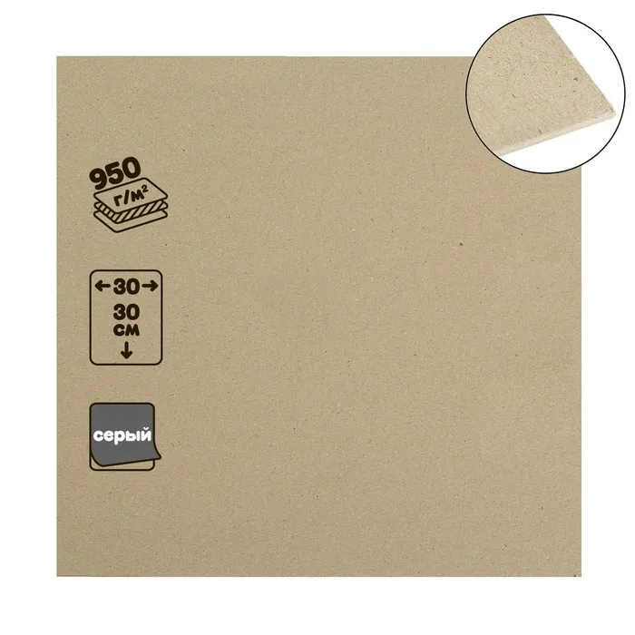 Картон переплётный (обложечный) 1.5 мм, 30 х 30 см, 950 г/м2, серый — Характеристики
