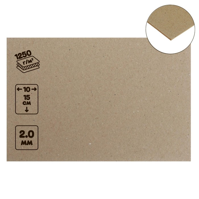 Картон переплётный (обложечный) 2.0 мм, 70×100 см, 1250 г/м², серый — Характеристики