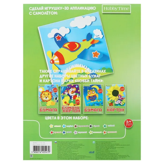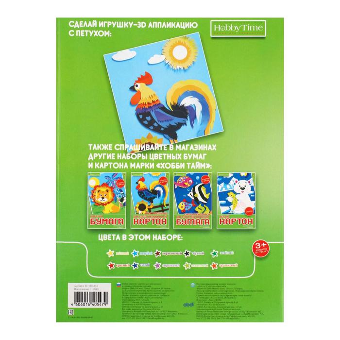 Картон цветной А3, 10 листов, 10 цветов "Хобби Тайм", МИКС — Характеристики