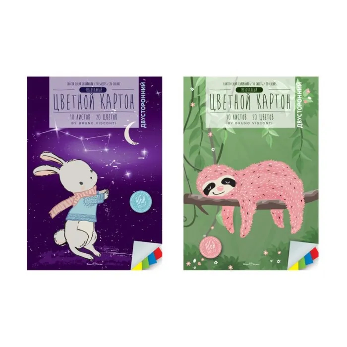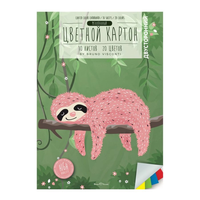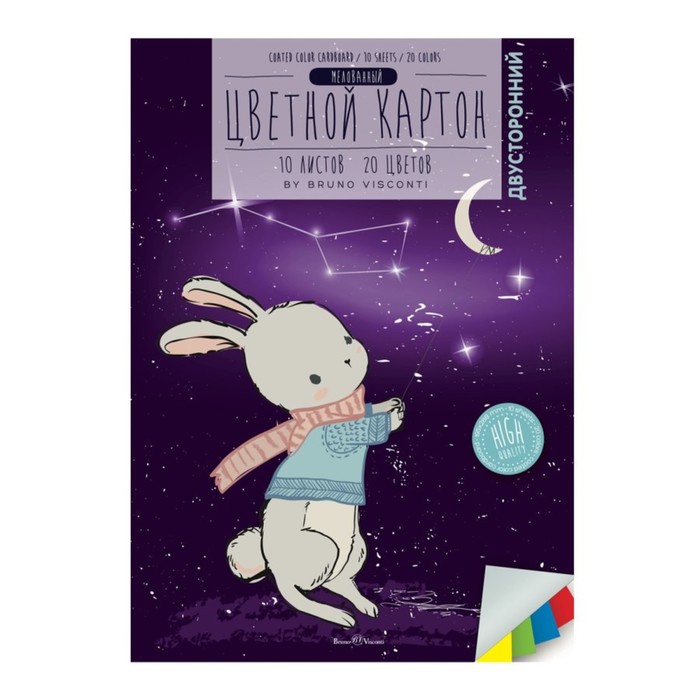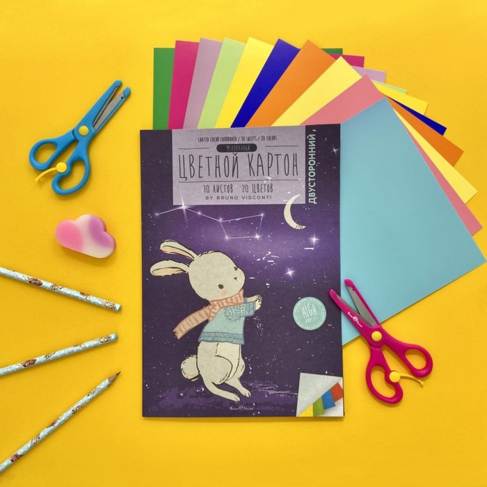 Картон цветной А4 10 листов, 20 цветов, двусторонний, мелованный, 190 г/м2, МИКС — Характеристики