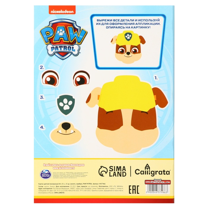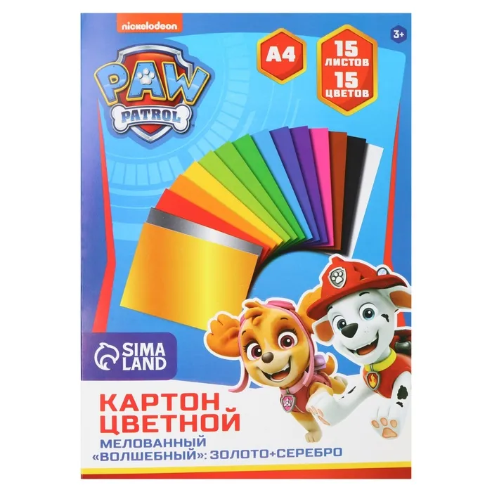 Картон цветной, А4, 15 листов, 15 цветов, мелованный, односторонний, в папке, 220 г/м², Щенячий патруль — Характеристики