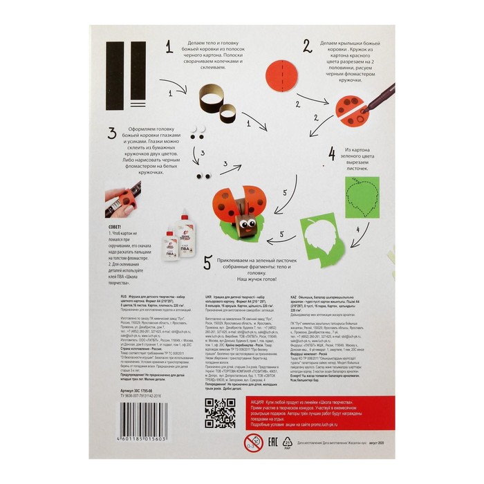 Картон цветной А4, 16 листов, 8 цветов "Луч", плотность 220 г/м2 — Характеристики