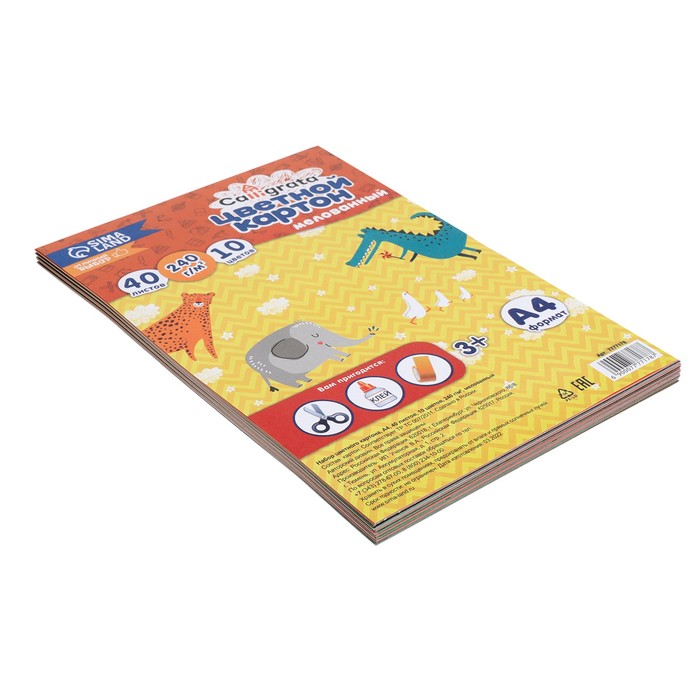 Картон цветной А4, 40 листов, 10 цветов, Calligrata, мелованный 240 г/м2, в т/у пленке — Характеристики