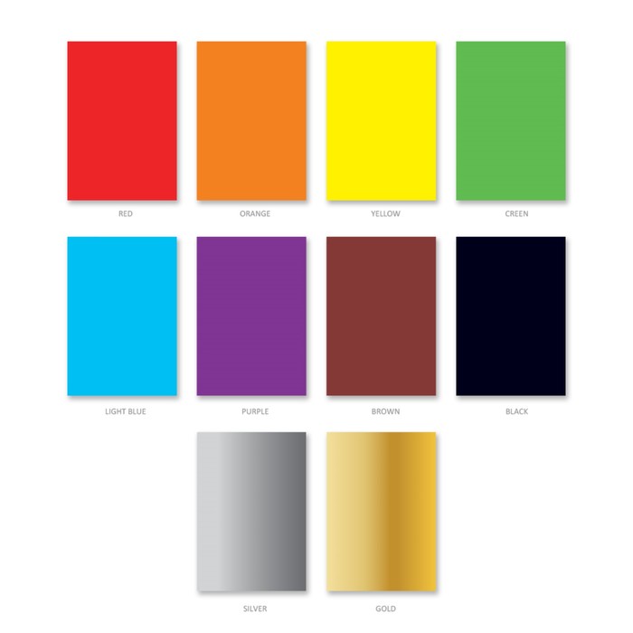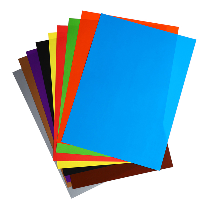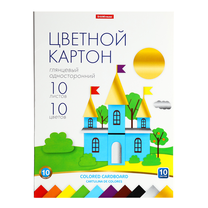 Цветной картон мелованный односторонний формата А4 (203х280 мм). Яркие насыщенные цвета. В папке 10 листов, 10 цветов. Плотность наполнения — 170 г/м2. Папка из плотного картона. Упакован в термоусадочную пленку по 5 штук.