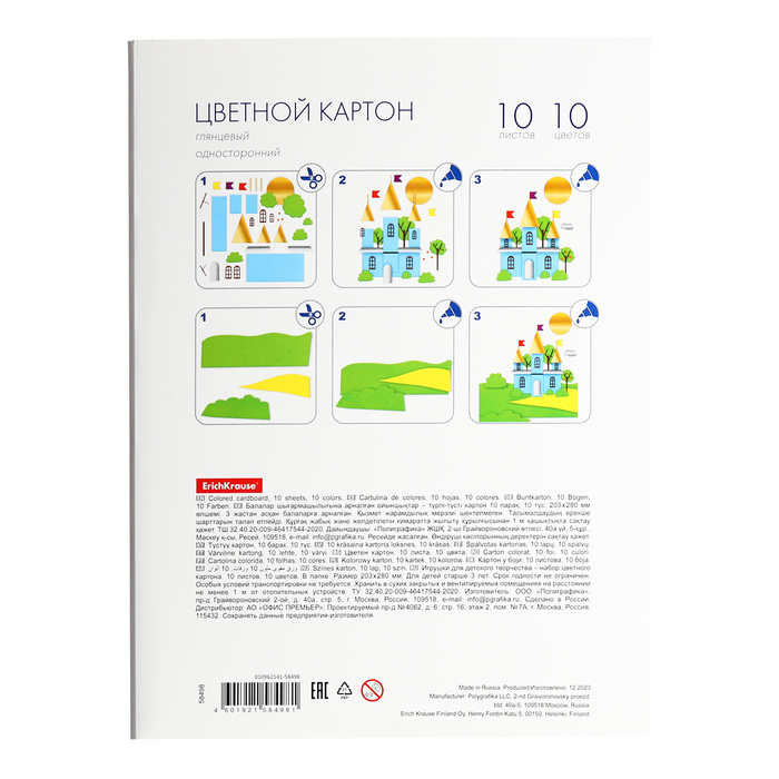 Картон цветной А4 ErichKrause, 10 цветов, 10 листов, мелованный односторонний глянцевый, 170 г/м², в папке, схема поделки — Характеристики