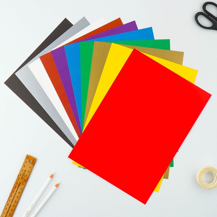 Картон цветной А4 мелованный односторонний 10 листов 10 цветов «Совушка» золото и серебро 220 г — Характеристики