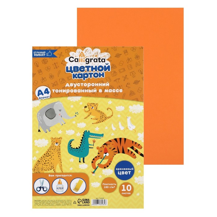 Картон цветной двусторонний А4, тонированный в массе, 10 листов, 180 г/м2, оранжевый — Характеристики