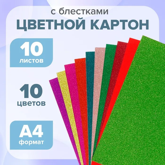 Картон цветной с блёстками А4, 10 листов, 10 цветов — Характеристики