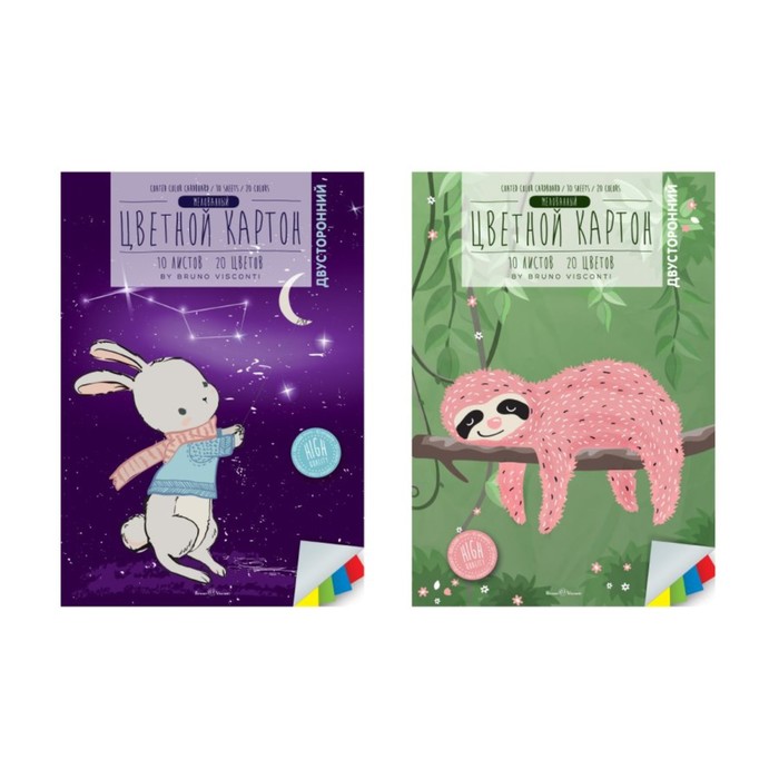 Картон цветной А4 10 листов, 20 цветов, двусторонний, мелованный, 190 г/м2, МИКС