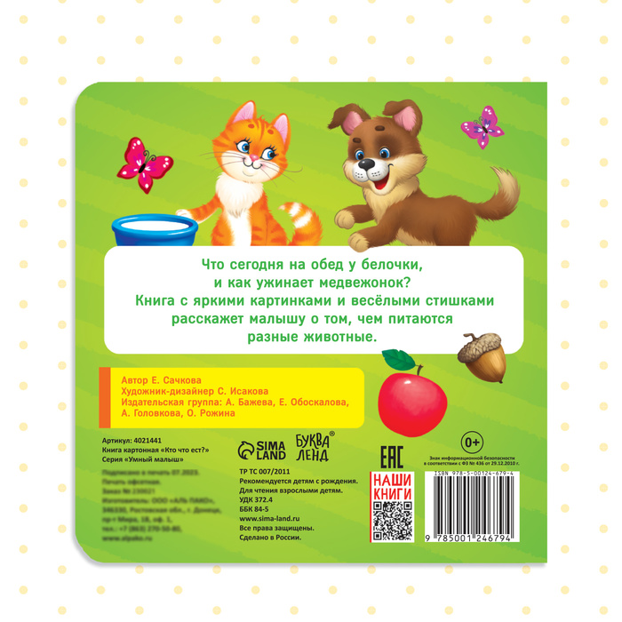 Картонная книга «Кто что ест», 10 стр. — Характеристики
