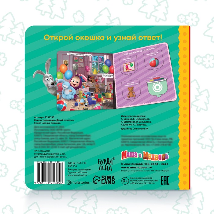 Картонная книга с окошками «Давай считать!», 10 стр., 16 окошек, Маша и Медведь — Характеристики