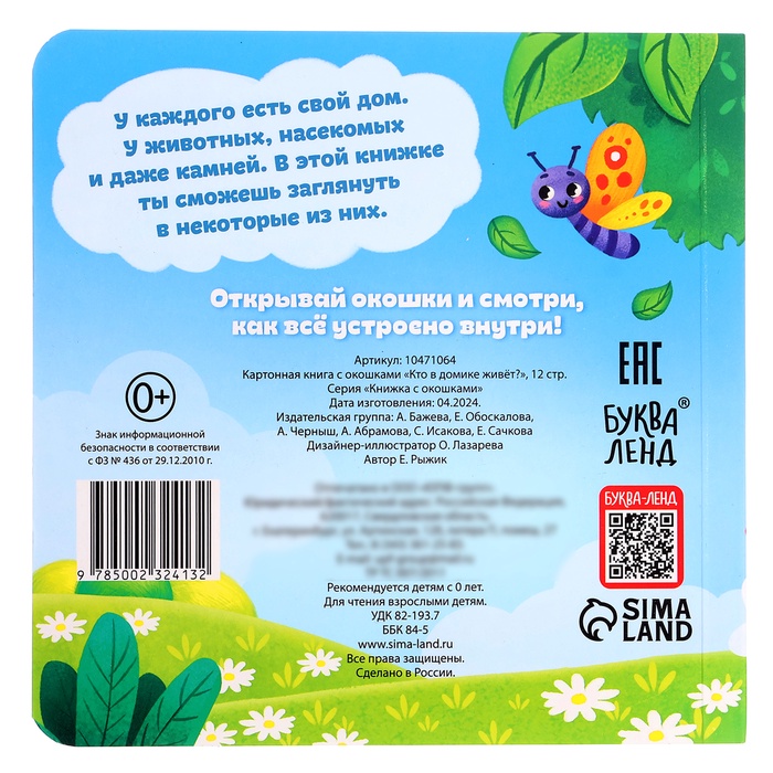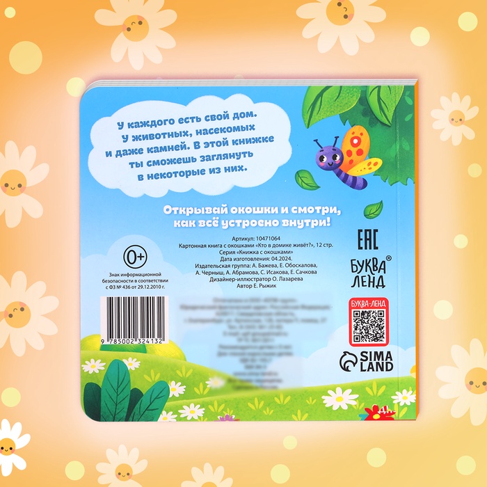Картонная книга с окошками «Кто в домике живёт?», 12 стр. — Характеристики