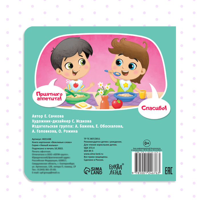 Картонная книга «Вежливые слова», 10 стр. — Характеристики