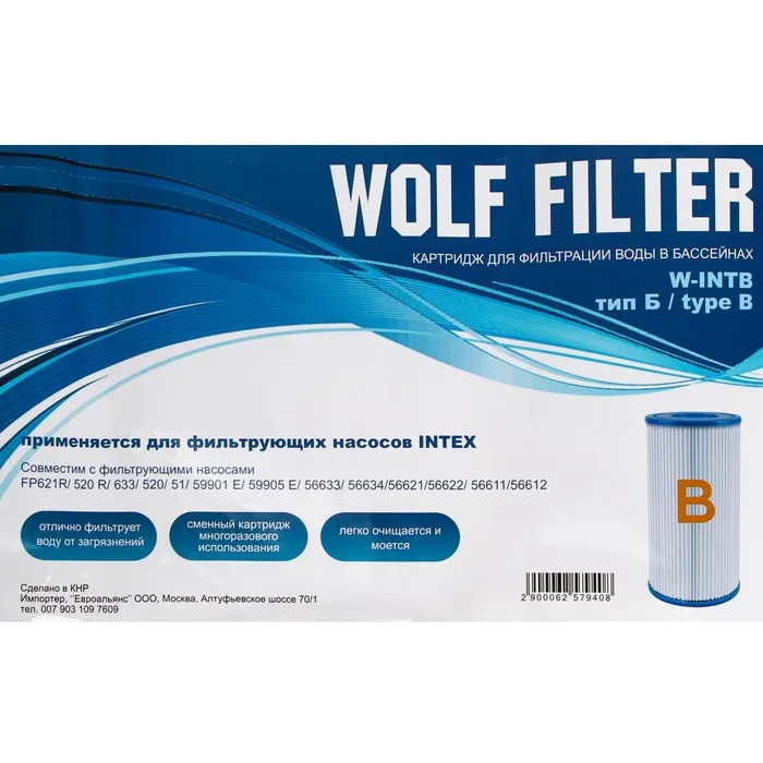 Сменный фильтр-картридж тип "В" для очистки воды в надувных и каркасных бассейнах, легко и быстро меняется.