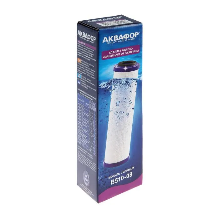 Сменный модуль "Аквафор" В510-08 предназначен для глубокой очистки воды с высоким содержанием железа.