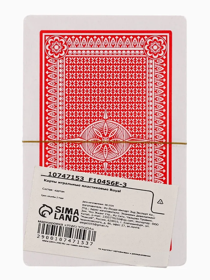 Карты игральные 54 шт. Royal, размер 5.6×8.6 см, красная рубашка — Характеристики