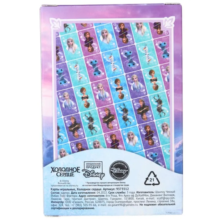 Карты игральные Холодное сердце, Дисней — Характеристики