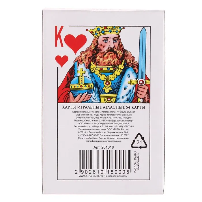Карты игральные «Король», колода 54 шт., 8.5×5.5 см — Характеристики