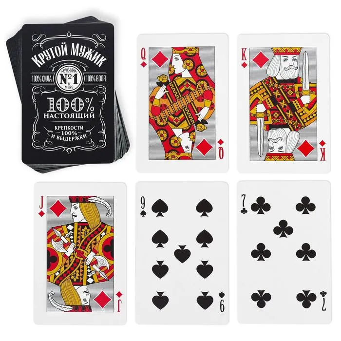 Эта колода станет отличным дополнением к подарку на 23 Февраля или День рождения любителю карточных игр. Колода подходит для многих видов карточных игр, а ещё её можно взять с собой в дорогу, чтобы приятно провести время в пути.