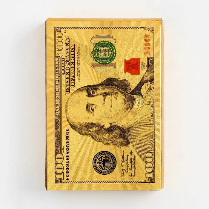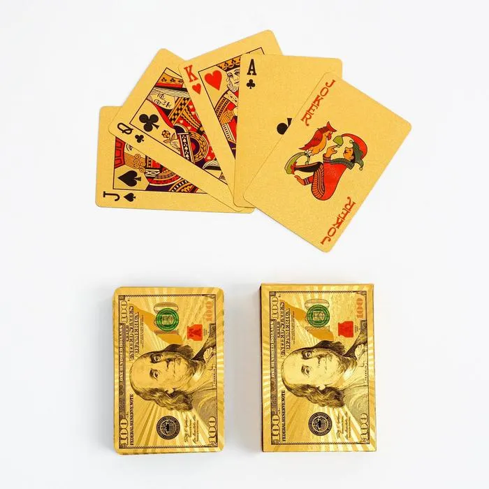 Карты игральные пластиковые «100 долларов», колода 54 шт., 8.8×5.7 см, золотистые