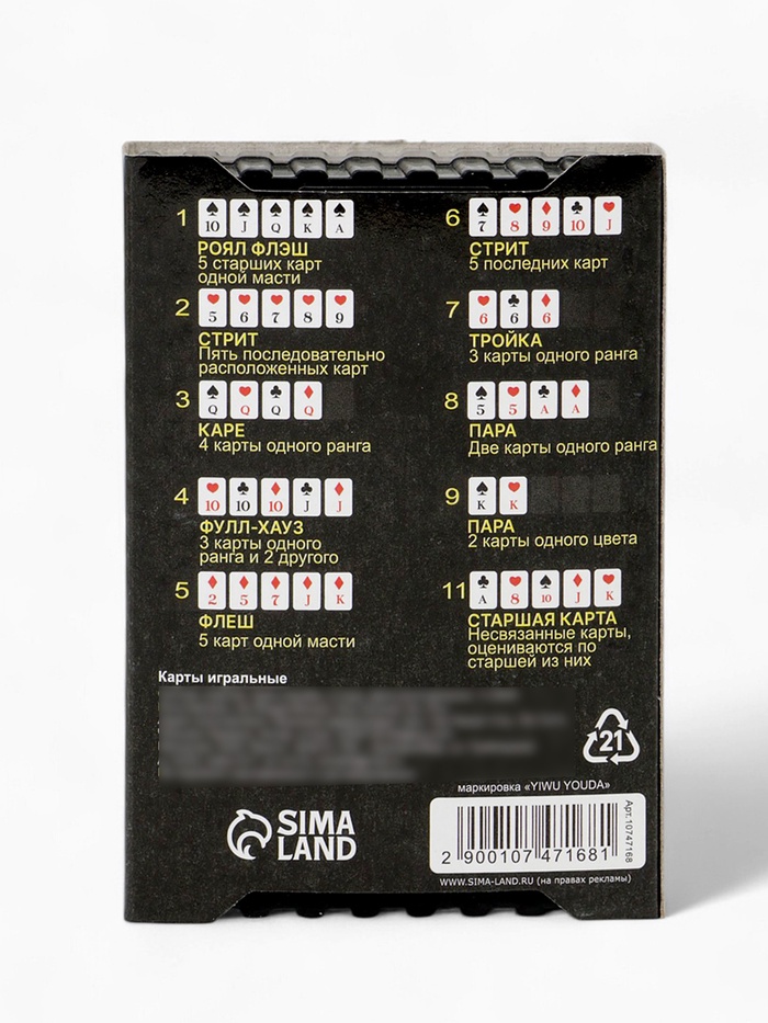 Карты игральные пластиковые 54 шт. «Время игры», для покера, 9.5×6.5 см, синяя рубашка — Характеристики