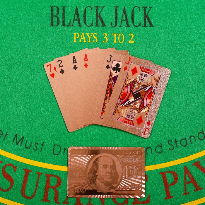 Карты игральные пластиковые «Доллар», колода 54 шт., 9×6 см, розовое золото — Характеристики