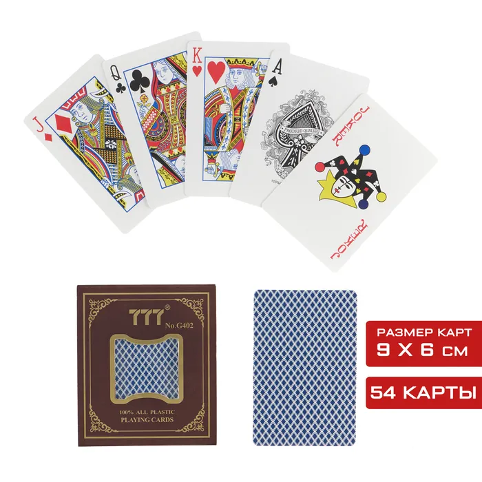 Карты игральные пластиковые Riffle - это высококачественные изделия, которые станут идеальным выбором для любителей карточных игр и фокусов. Колода состоит из 54 уникальных карт размером 9 х 6 см и толщиной 30 мкм. В колоде игральных карт есть четыре масти: пики, крести, буби и черви. Каждая масть состоит из 13 карт: туз, король, дама, валет и числовые карты от 2 до 10. Колода "Riffle 777" - это прочные и долговечные карты. Они идеально подходят для использования в домашних условиях, а также для профессиональных игроков и фокусников. Хороши для различных видов карточных игр, от классических, до современных. Могут быть использованы для обучения фокусам и трюкам, что делает их незаменимым инструментом для всех, кто интересуется карточными играми и магией. Высококачественный пластик и четкий рисунок персонажей обеспечивают комфортное использование карт на протяжении долгого времени. Благодаря своему цветовому исполнению, эти игральные карты становятся отличным дополнением к любому хобби и творчеству. Красиво будут смотреться броски, вращения, переворачивания. Получится достигнуть максимального визуального эффекта. Они не склеиваются, не заминаются и выполнены в узнаваемом дизайне. Находка для страстных коллекционеров. Они станут вашим верным спутником в мире карточных игр и фокусов, обеспечивая вам удовольствие и радость от каждого использования.