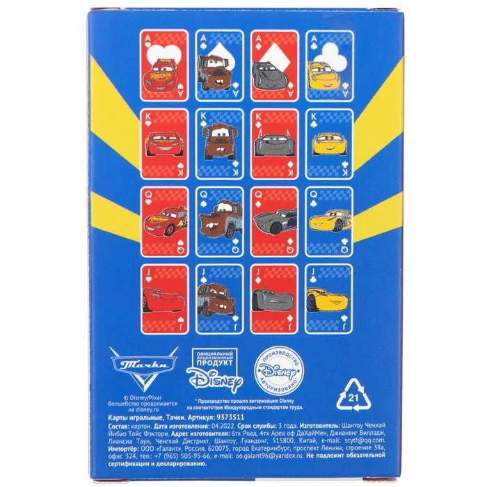 Карты игральные Тачки, Дисней — Характеристики