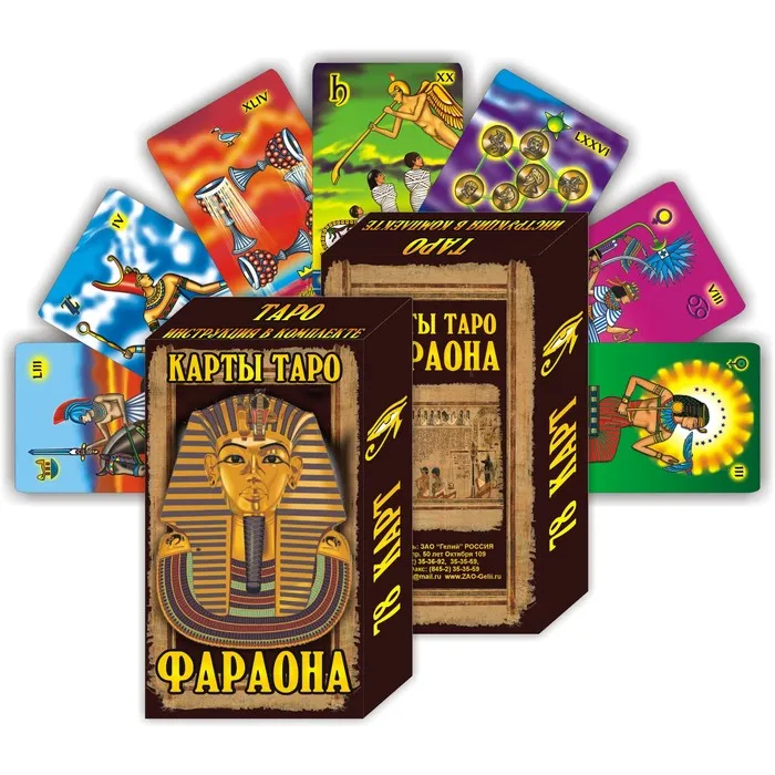 Карты Таро Фараона выполнены в тематике Древнего Египта. Рисунки несут дух и настроение того времени, как будто оживают герои и события древних времен. В изображение ситуации каждой карты заложены главные аспекты культуры и воспитания Древнего Египта.
