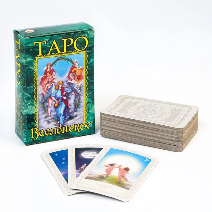 Хотите узнать своё ближайшее будущее? Таро Вселенское могут дать ответы на некоторые важные жизненные вопросы. Колода карт включает в себя подробные описания-инструкции каждого листа.