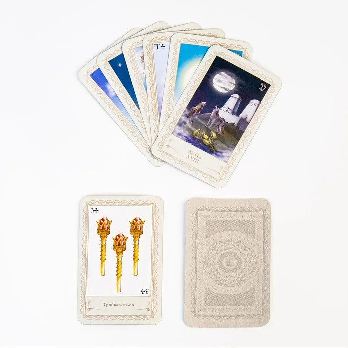 В комплекте карты: 22 Старших Аркана и 56 Младших Арканов с инструкцией по гаданию и предсказанию.
