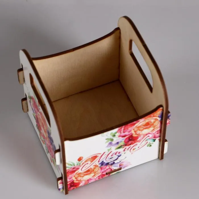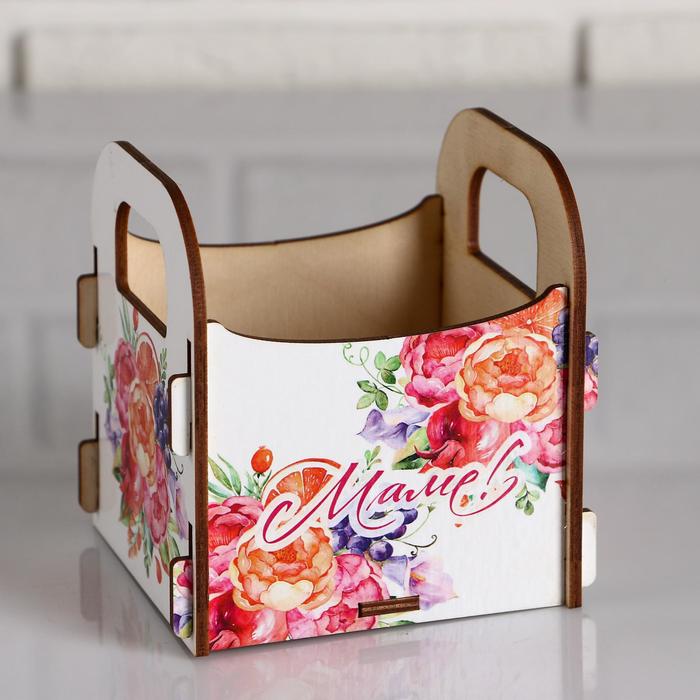 Кашпо деревянное 10.5×10×11 см подарочное Рокси Смит "Маме! Цветы", коробка