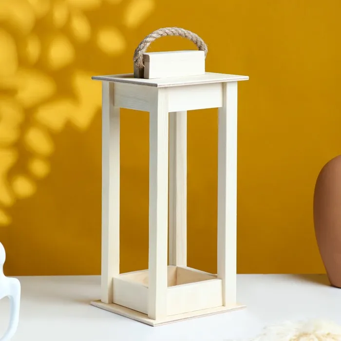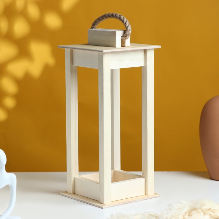 Кашпо деревянное 12×12×30 см "Фонарик", ручка верёвка, натуральный Дарим Красиво — Характеристики