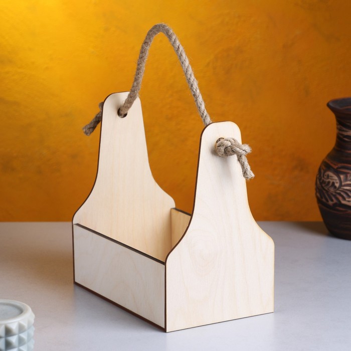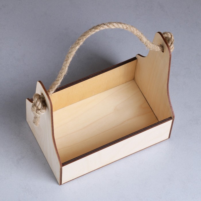 Кашпо деревянное 20×12.5×20 см Стелла Моно, ручка верёвка, натуральный Дарим Красиво — Характеристики