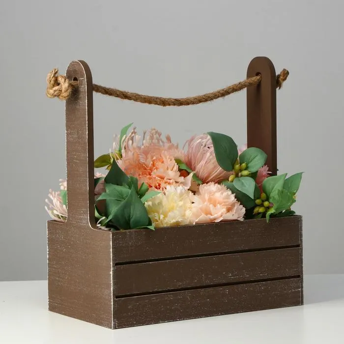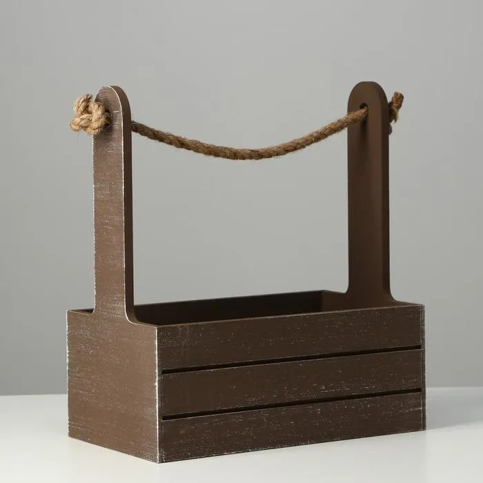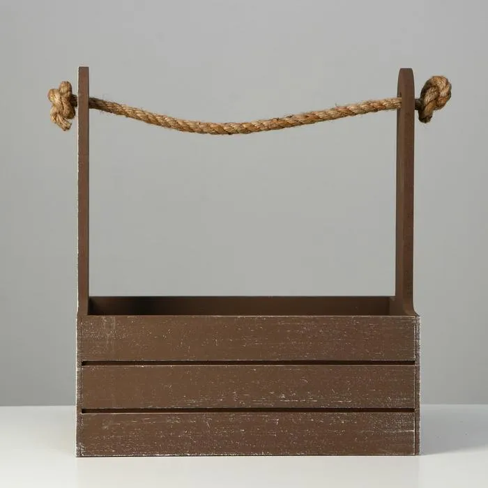 Кашпо деревянное 25.5×15×30 см "Прованс", ручка канат, коричневый — Характеристики