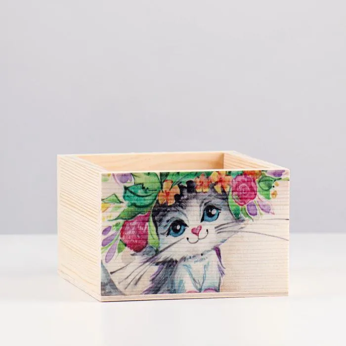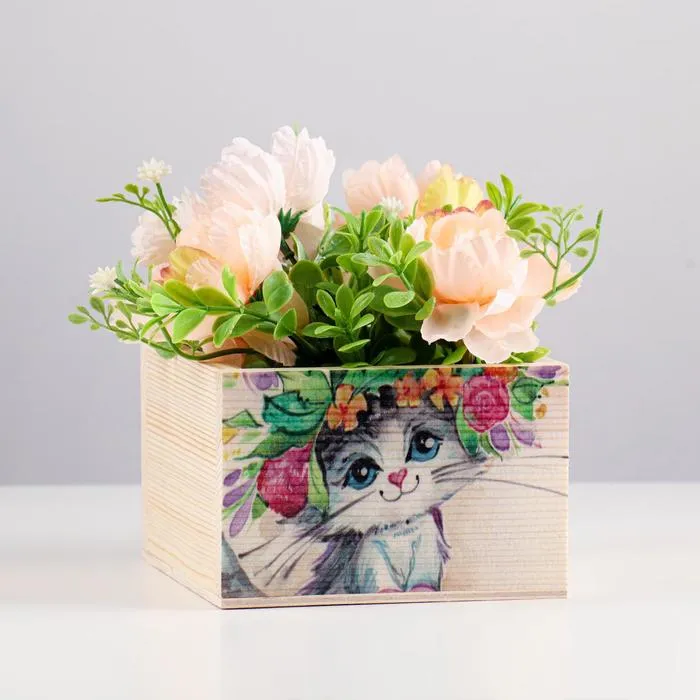 Кашпо деревянное "Котик" 14,5×12,5×8,5 см — Характеристики