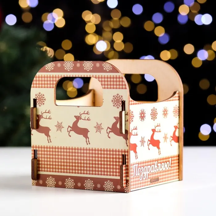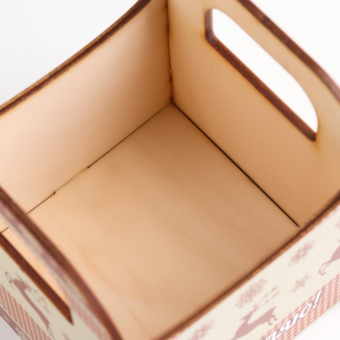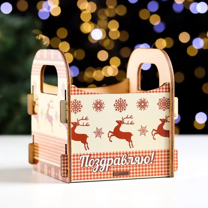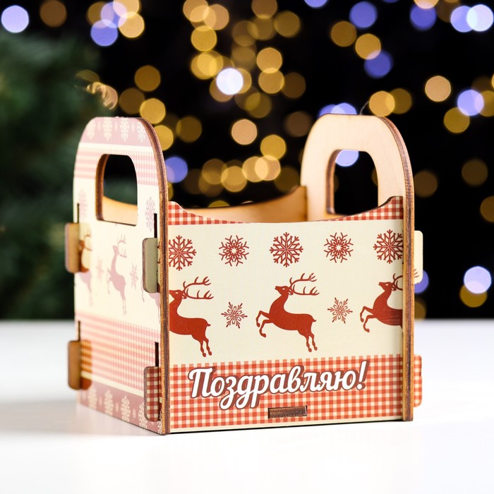 Кашпо деревянное «Олени новогодние, Поздравляю!», для подарков, цветов, 10×10.5×11 см — Характеристики