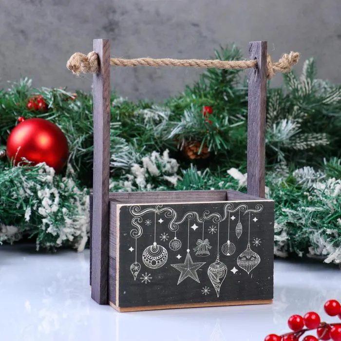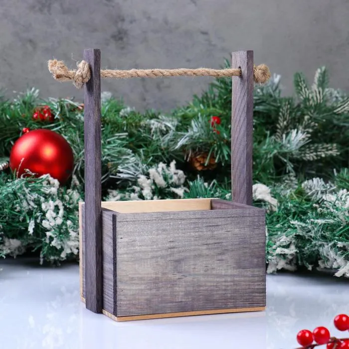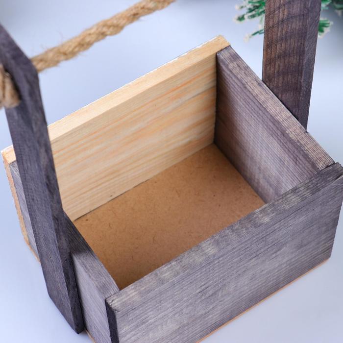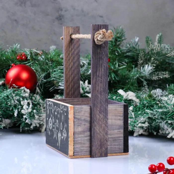 Кашпо деревянное «Пауль и Любовь. Новогодняя гирлянда», с принтом, для подарков, цветов, 15×12×8.5(25) см — Характеристики