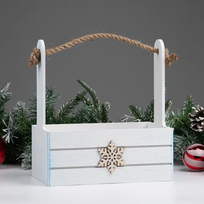 Кашпо деревянное «Снежинка», белый, для подарков, цветов, 25×15×30 см — Характеристики