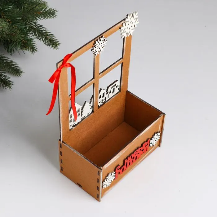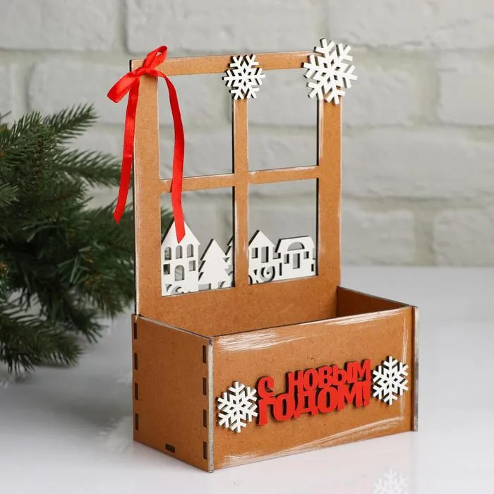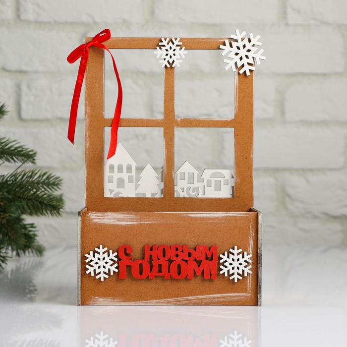 Кашпо деревянное «Взгляд в окошко. С Новым годом», для подарков, цветов, 15.5×9×23.5 см — Характеристики